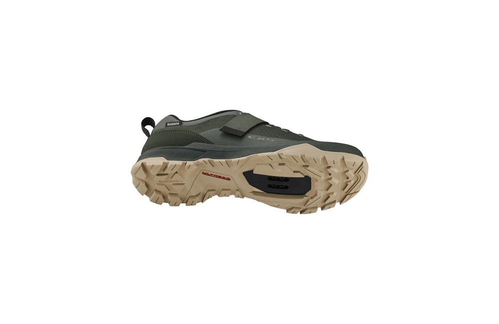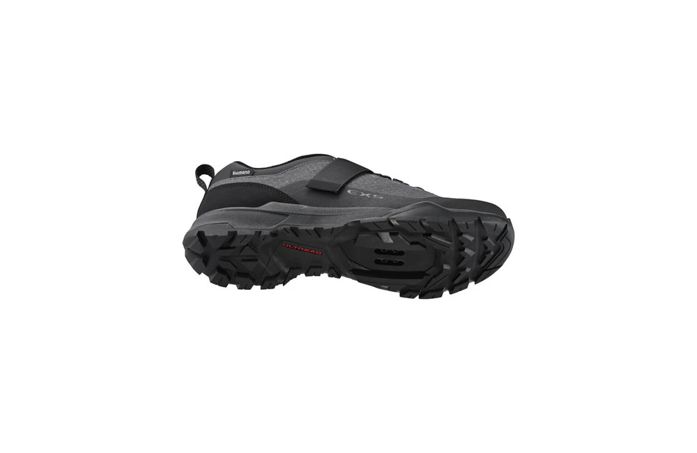 - Semelle ULTREAD EX : En caoutchouc haute adhérence, avec un dessin optimisé pour affronter les terrains difficiles, aussi bien à vélo qu’en marche.